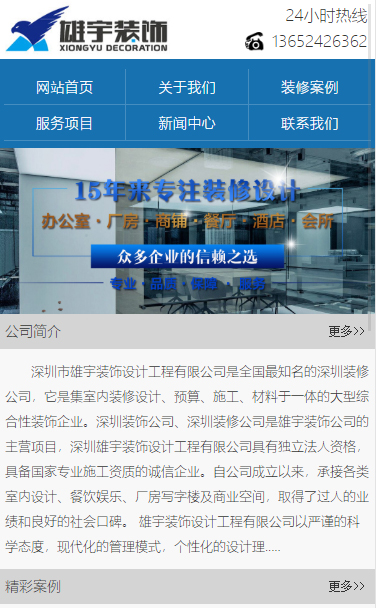 深圳雄宇装饰公司多年来一直专注深圳写字楼装修、深圳办公室装修、装饰,坚持以客户价值为原则的经营理念,深受客户和装修行业协会的信赖,我们提供:深圳厂房装修,办公室,写字楼,居家,酒吧酒店,家庭别墅,商场会所装修等室内装修装饰设计施工服务。